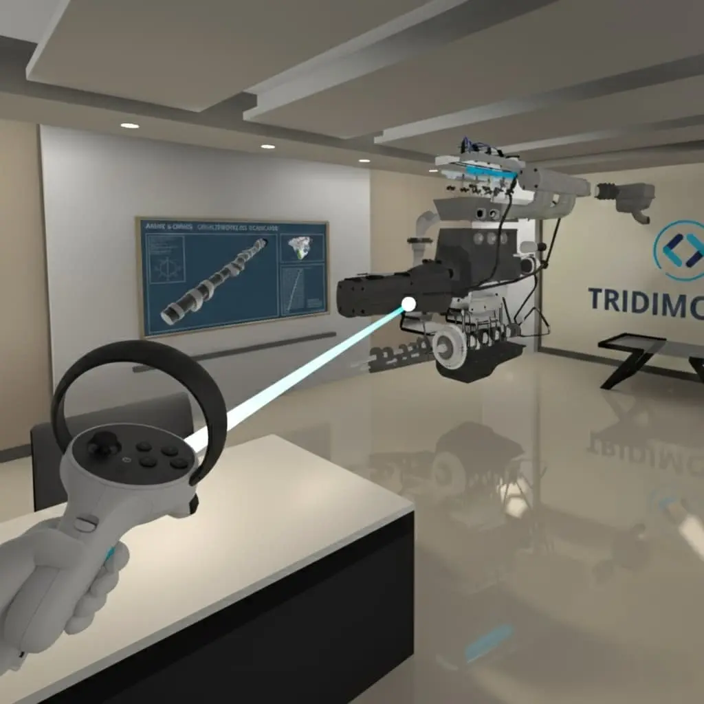 - Interactions avancées : préhension réaliste des outils et composants avec retour haptique