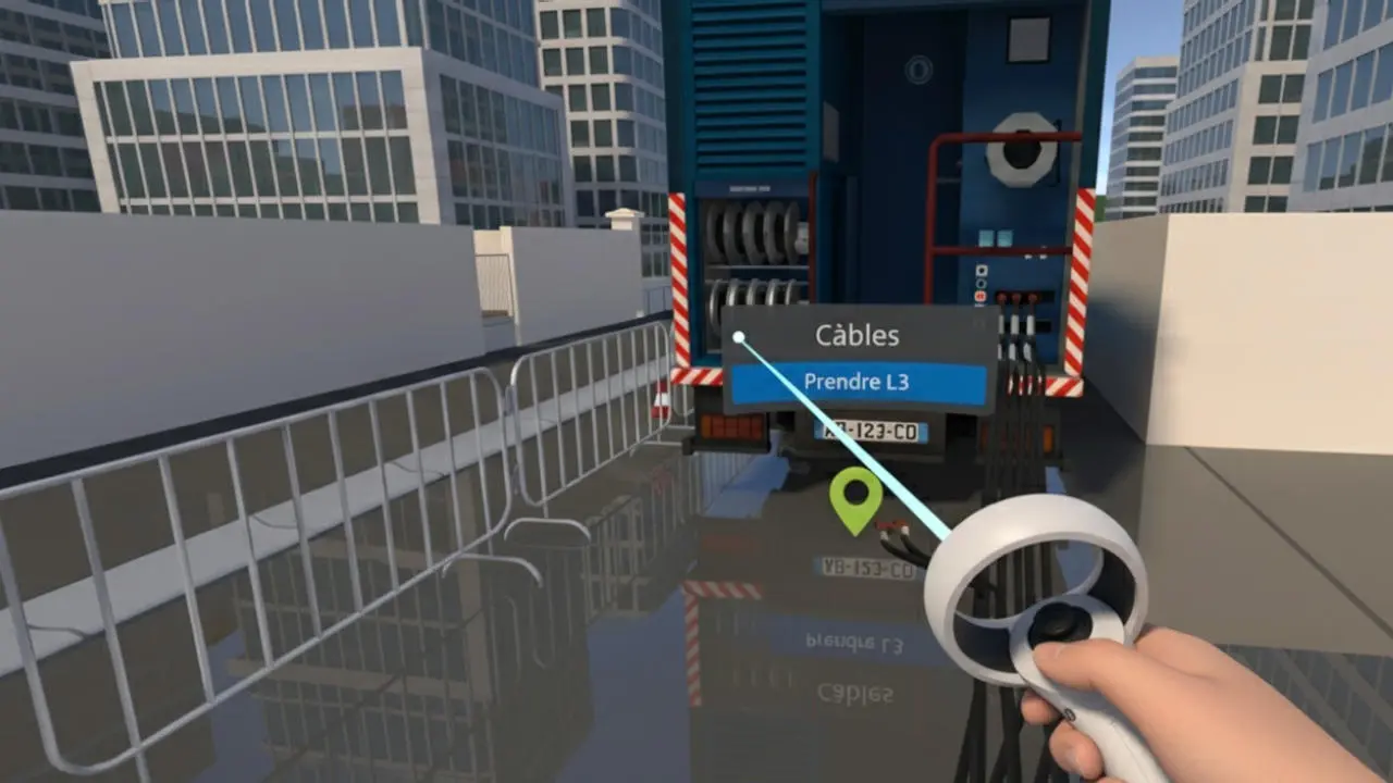 J'ai conçu plusieurs modules de prévention VR couvrant les chutes de hauteur, les risques électriques, la conduite d'engins et les situations d'urgence.
